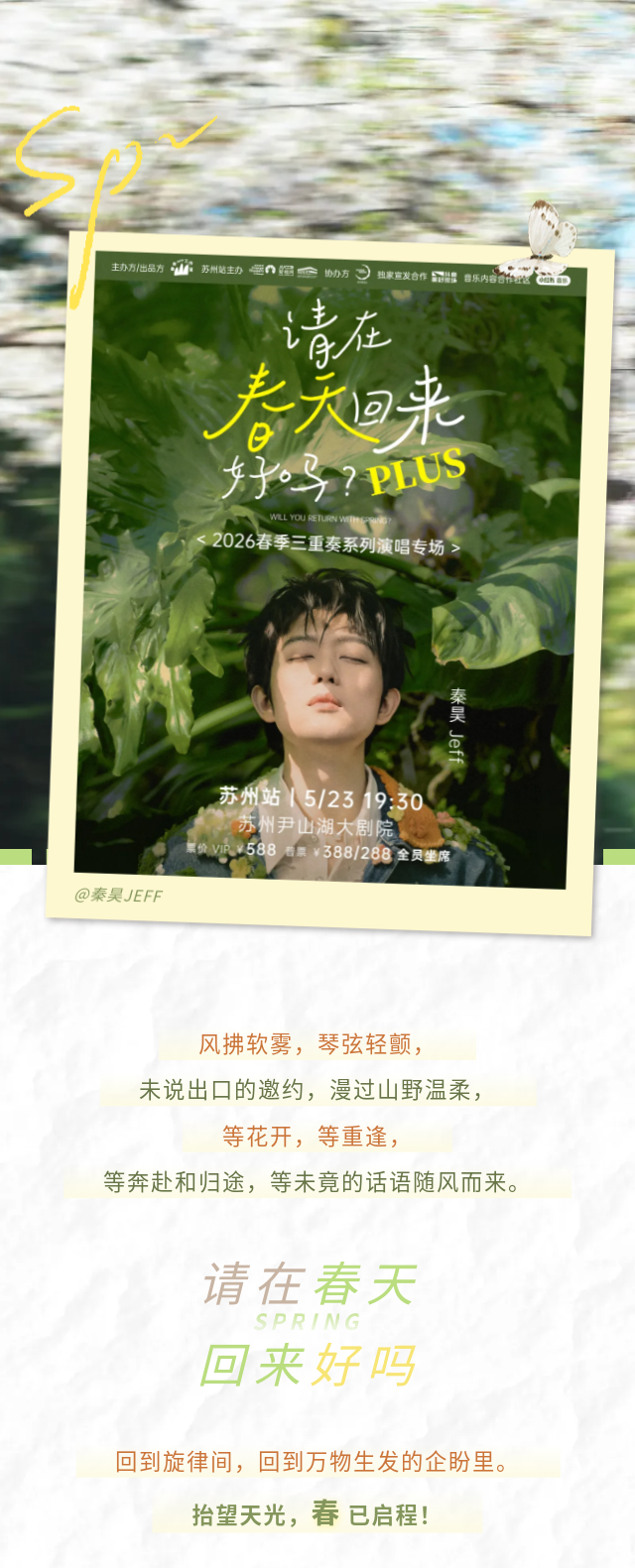 【苏州】秦昊Jeff2026三重奏系列演唱plus专场《请在春天回来好吗?》-苏州站