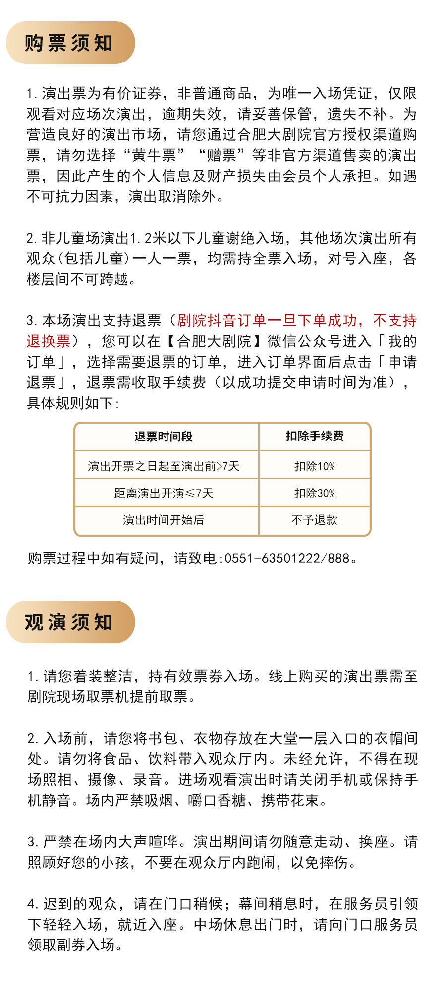 1.演出票品为特殊商品,除不可抗力因素导致演出取消外,订单不支持退换,可在平台转售;