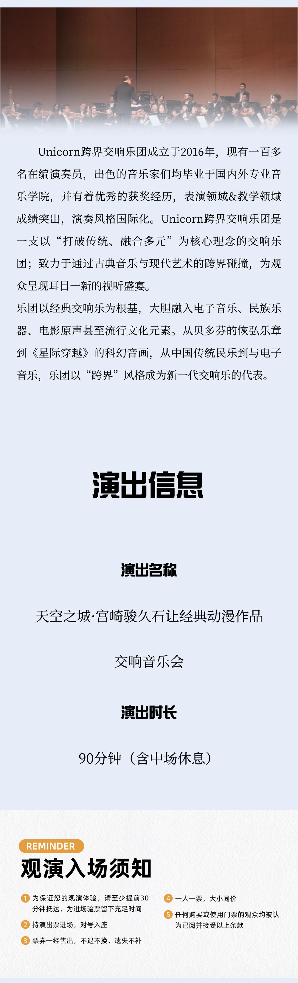 2.演出详情仅供参考,具体以主办方公布信息及现场为准,请准时到场以免错过演出;