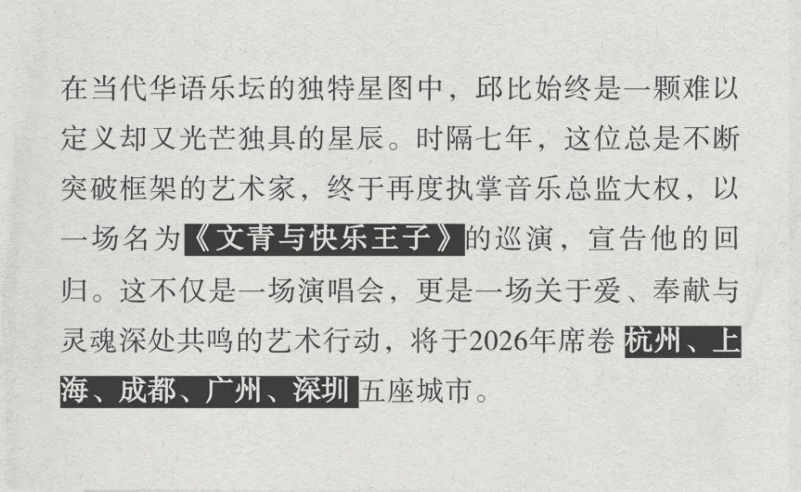 邱比 CHOVBE「文青与快乐王子」2026 巡演 深圳站