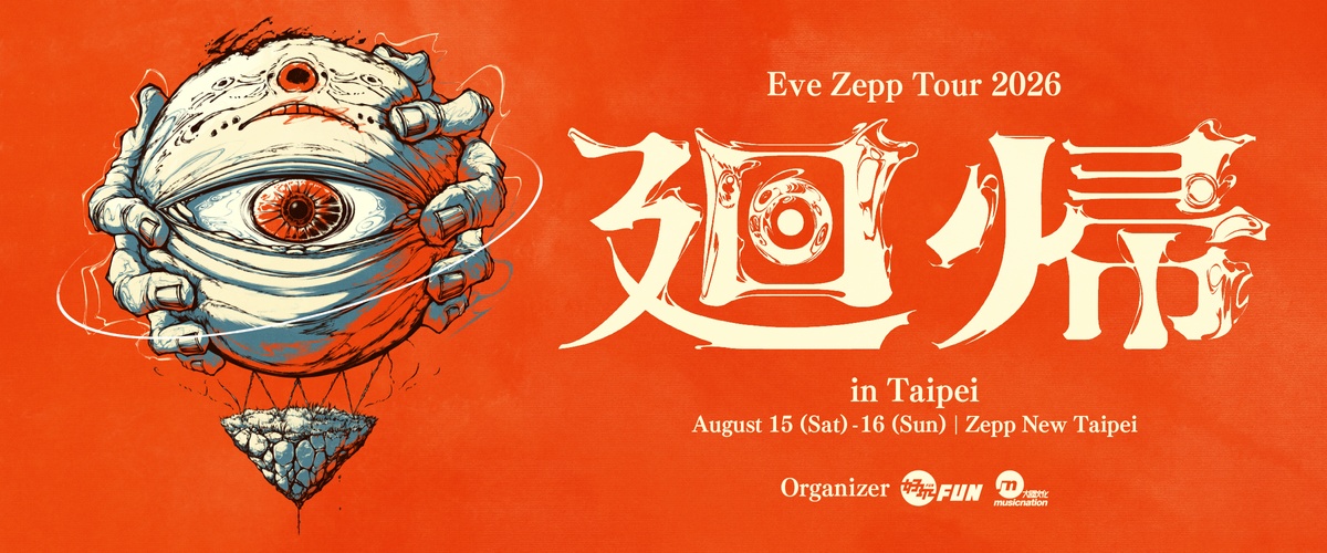 日本创作歌手 Eve,继 2024 年在 Zepp New Taipei 创下开卖即秒杀、一票难求的震撼纪录后,今日正式宣布将于 2026 年 8 月再度登台!本次巡迴 Eve Zepp Tour 2026「迴归」in Taipei 将于 8 月 15 日、16 日一连两天开唱,消息一出势必再次引爆广大歌迷热烈讨论。