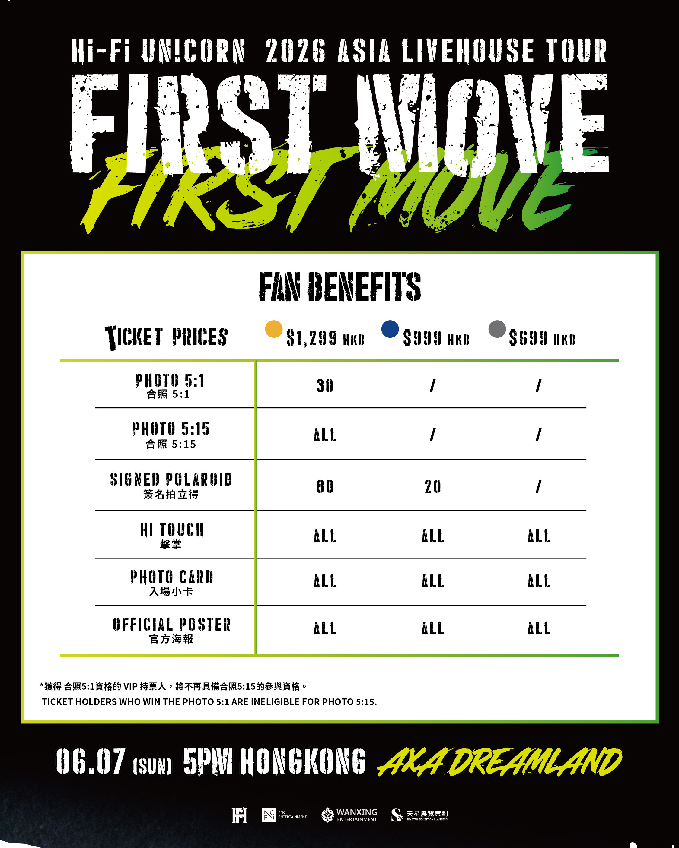 五位成员将用最真诚的音乐,与大家共度一个难忘的夜晚。香港的RaSiDo们准备好你们的热情和应援,迎接这场属于我们和Hi-Fi Un!corn的音乐派对!6月7日,AXA Dreamland,不见不散