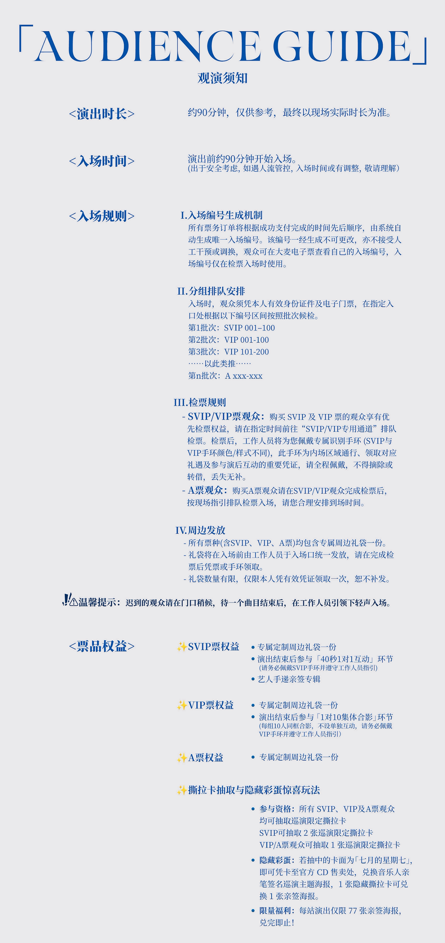 2.演出详情仅供参考,具体以主办方公布信息及现场为准,请准时到场以免错过演出;