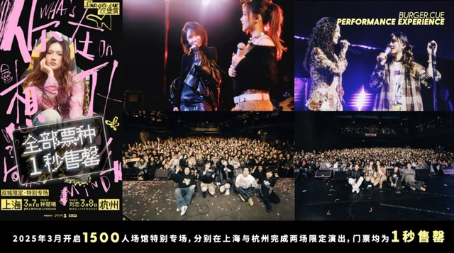 紧接着与钟楚曦、刘恋两位姐姐联动,分别在上海和杭州完成特别企划专场,也拿到了属于自己的1500人秒售罄的Livehouse票房新纪录。