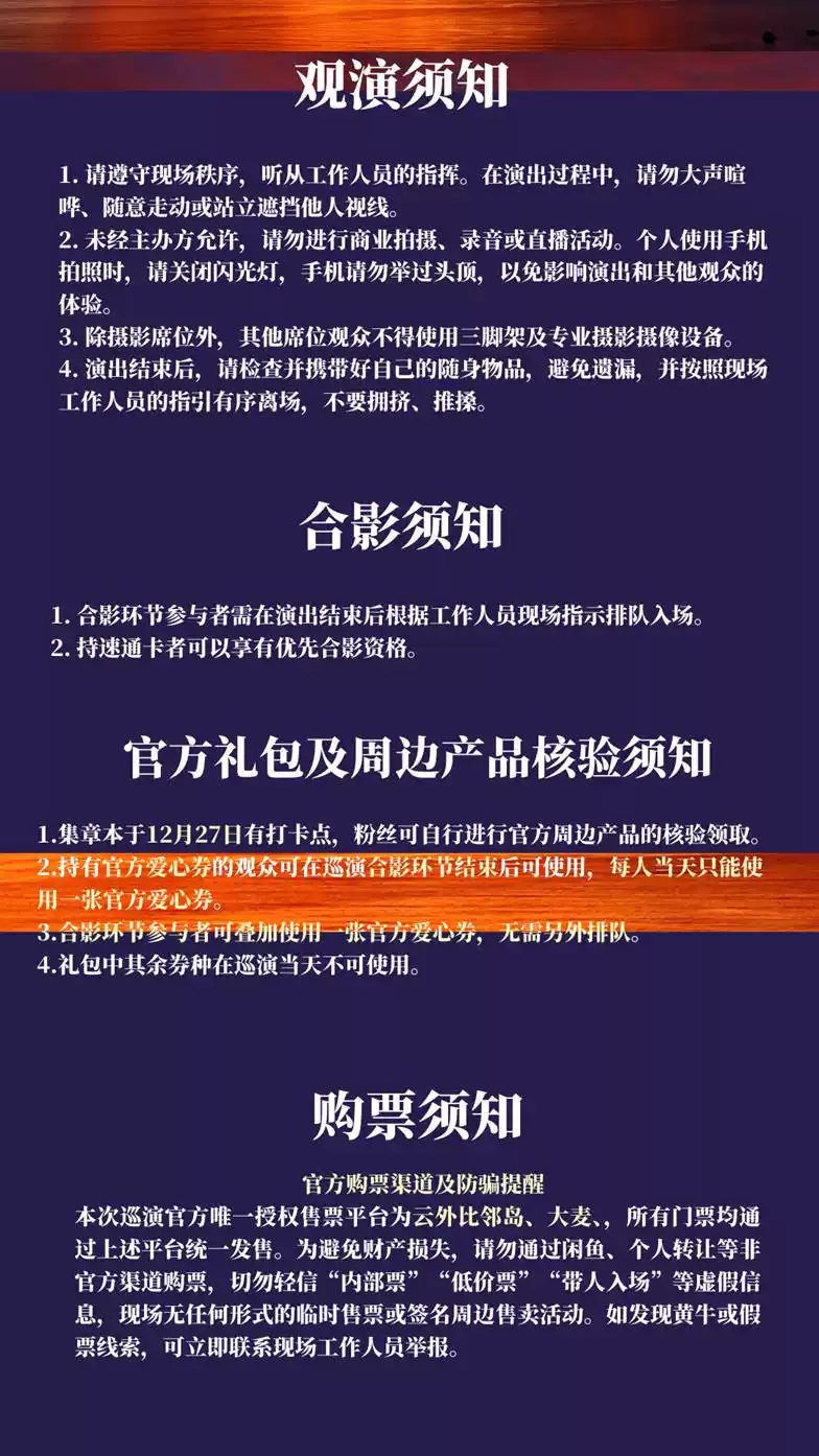 2. The details of the performance are for reference only, and the specific information released by the organizer and the scene shall prevail. Please arrive on time to avoid missing the performance;