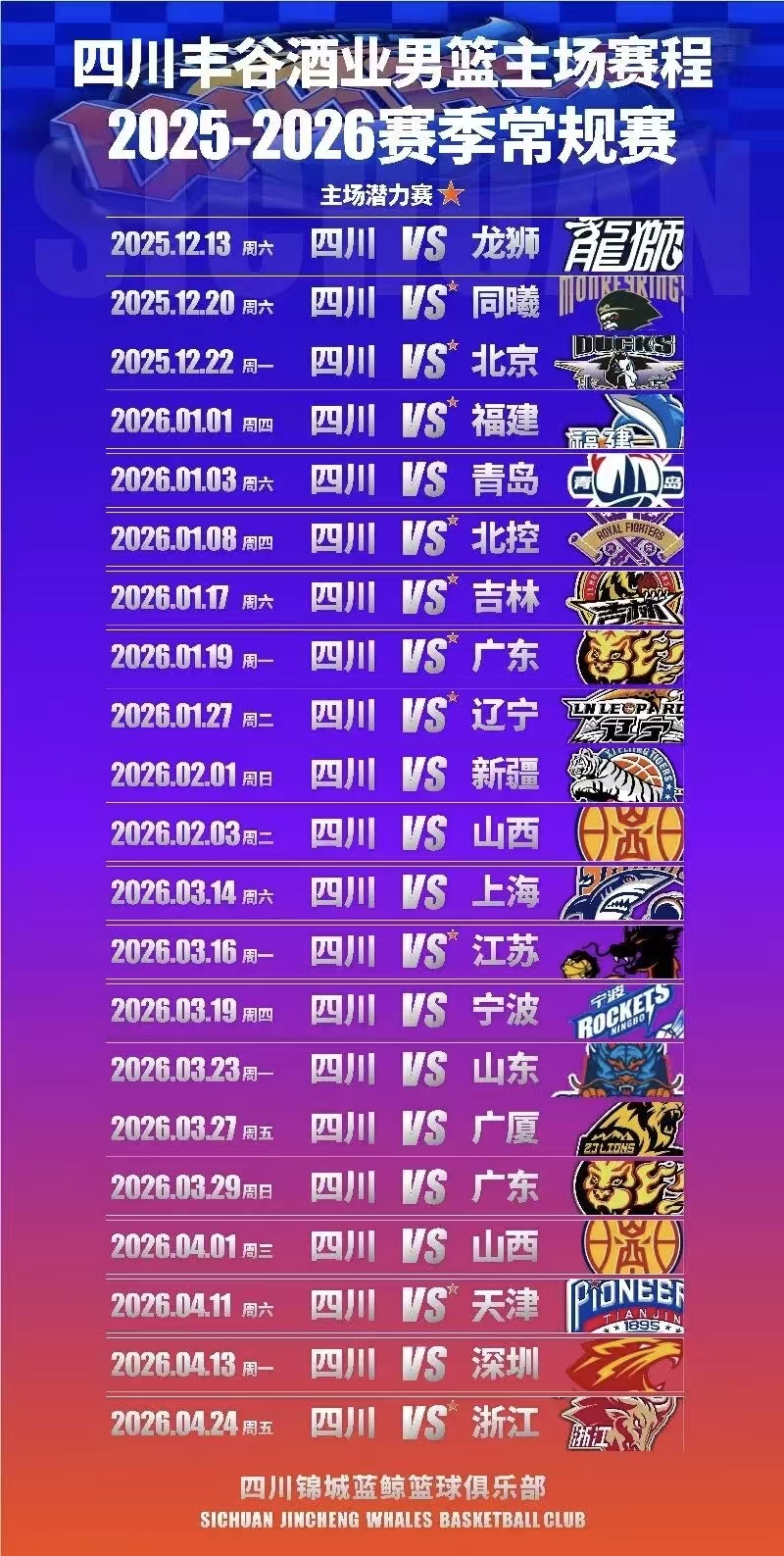 【Chengdu】2025-2026 CBA League Sichuan Fenggu Wine Home Tickets