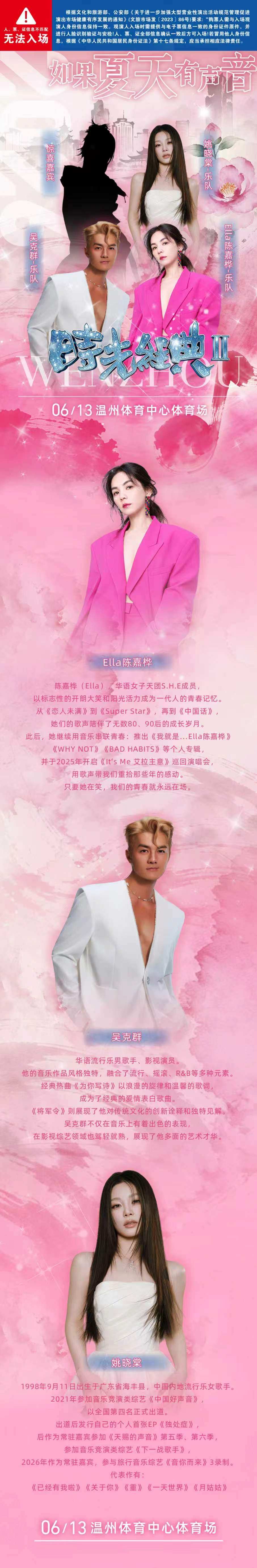 【温州】「Ella陈嘉桦/吴克群/姚晓棠」“时光经典Ⅱ”明星演唱会·温州站