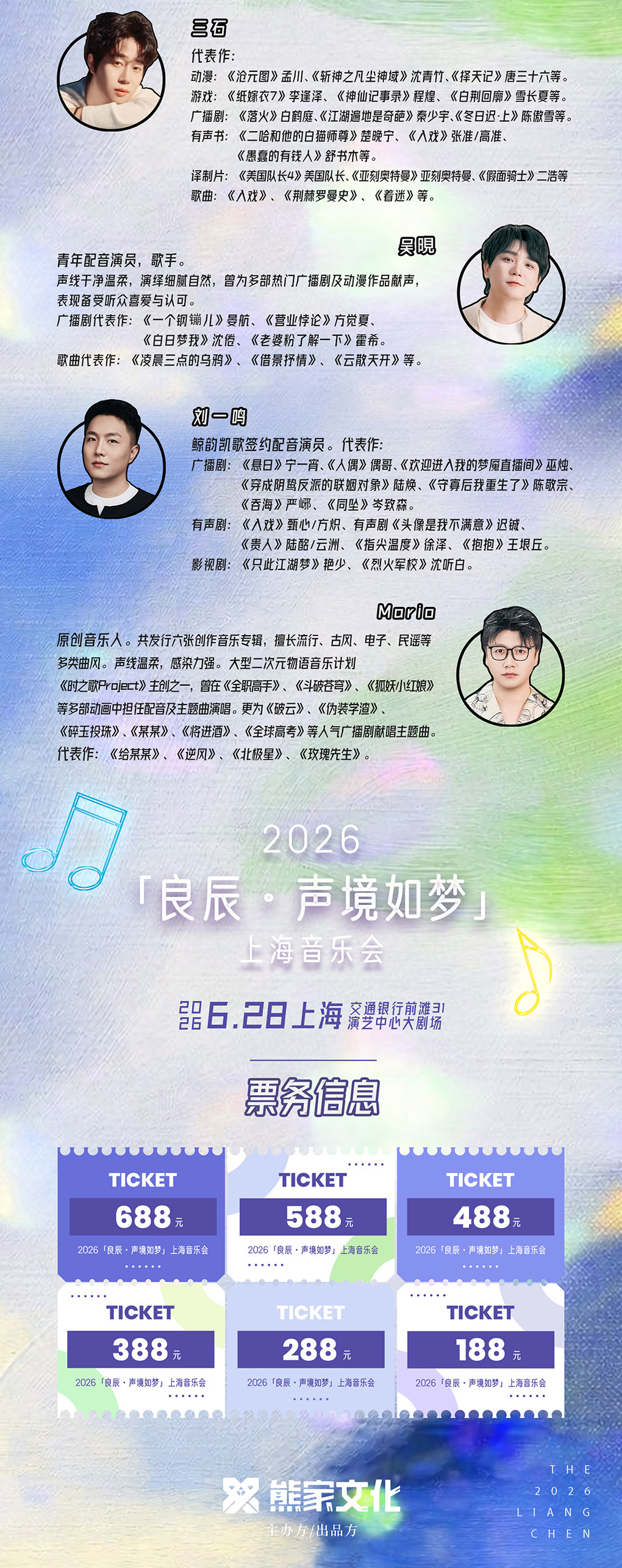 【上海】「良辰·声境如梦」上海音乐会(演出阵容:金弦/郑希/杨天翔/袁铭喆等)