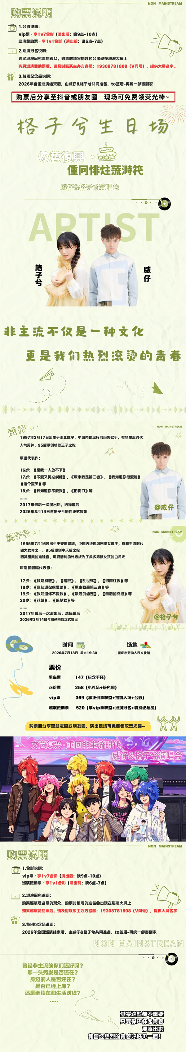 【重庆】《文艺复兴·重回非主流时代》威仔&格子兮演唱会-重庆站