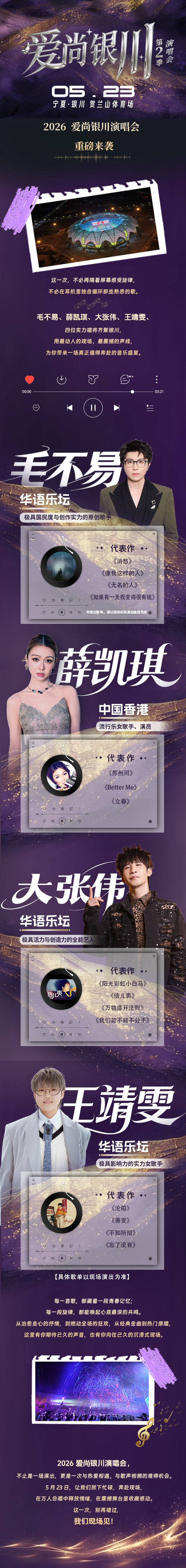 「毛不易/薛凯琪/大张伟/王靖雯」2026爱尚银川演唱会