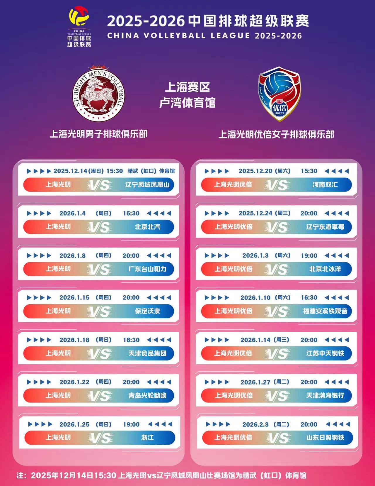 【上海】2025-2026中國排球超級聯賽(上海賽區)