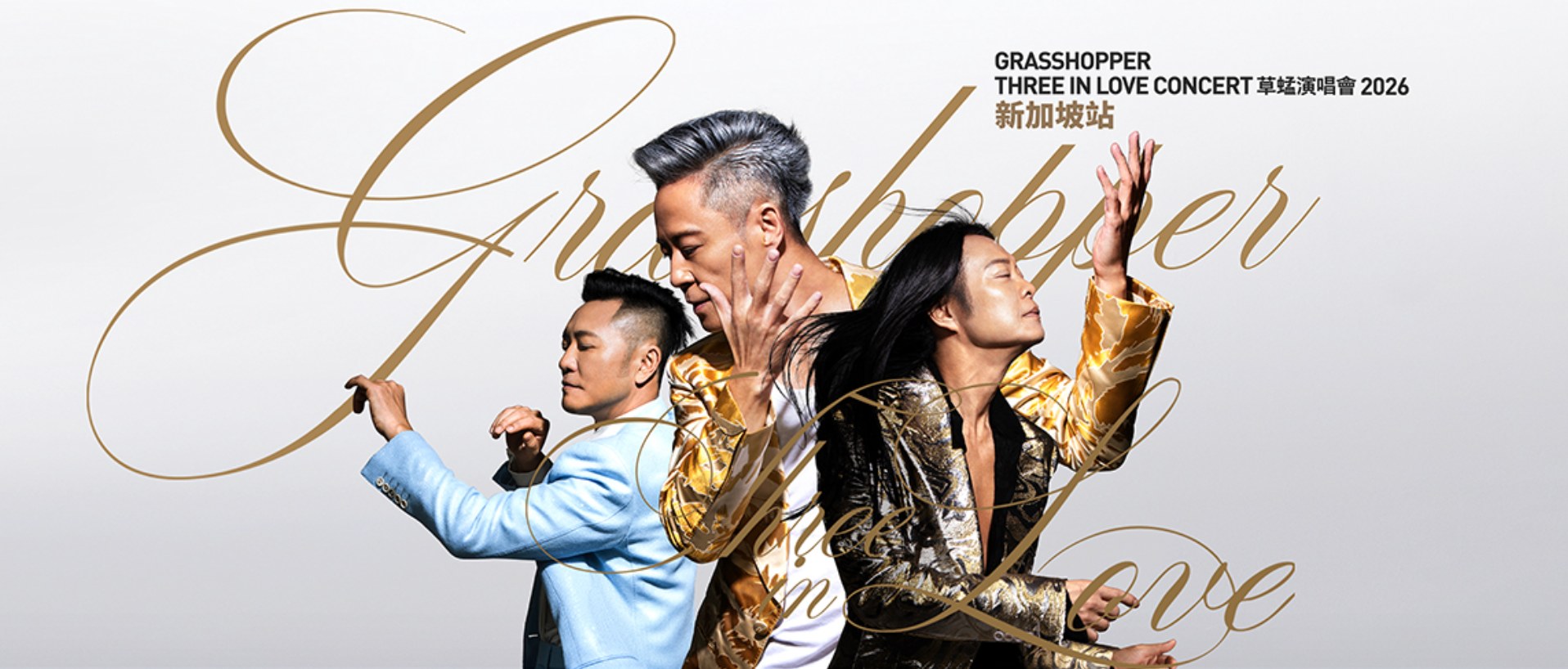 华语乐坛殿堂级组合草蜢迎来成军40周年里程碑,重磅推出《GRASSHOPPER THREE IN LOVE CONCERT 2026》巡演。