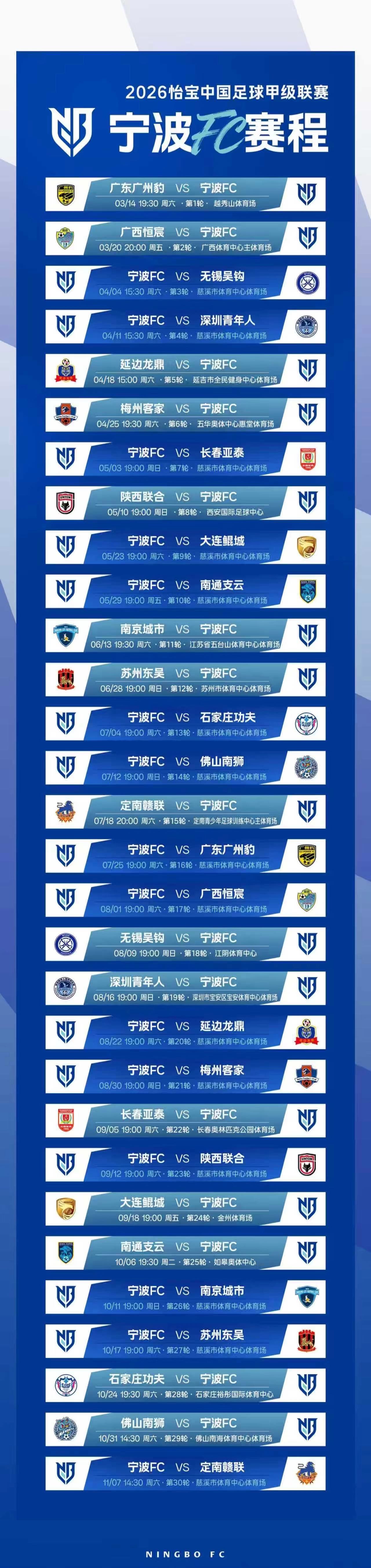 【宁波】2026中甲联赛宁波俱乐部主场门票