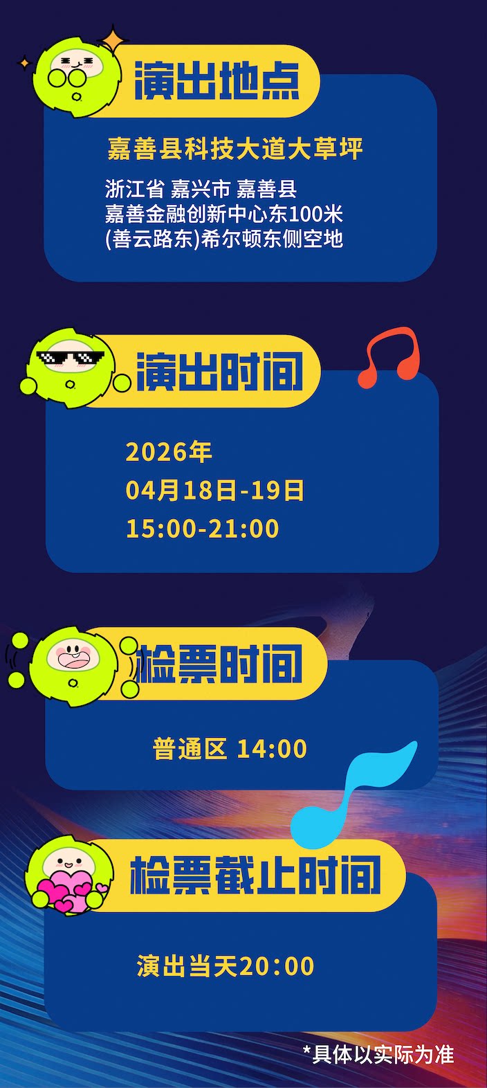 2.演出详情仅供参考,具体以主办方公布信息及现场为准,请准时到场以免错过演出;