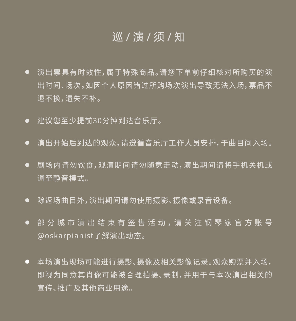 2.演出详情仅供参考,具体以主办方公布信息及现场为准,请准时到场以免错过演出;