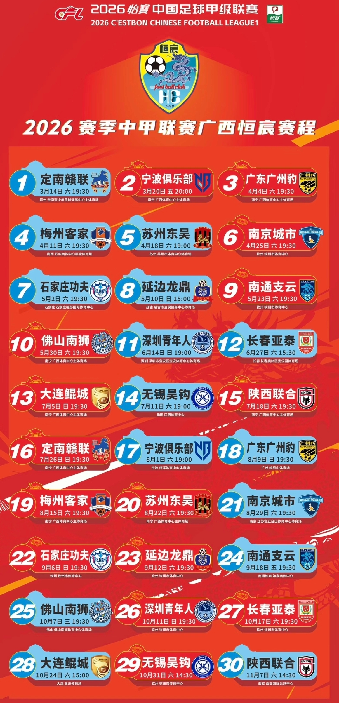 【南宁】2026中甲联赛广西恒宸主场门票