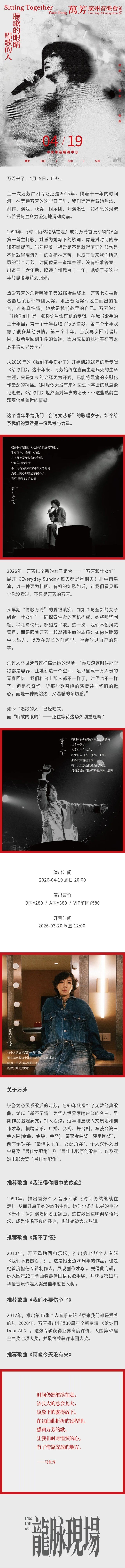 【广州】“听歌的眼睛,唱歌的人”万芳 广州音乐会 广州