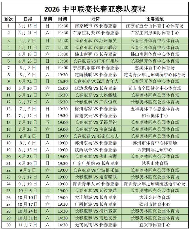 【长春】2026赛季中甲联赛长春亚泰主场门票