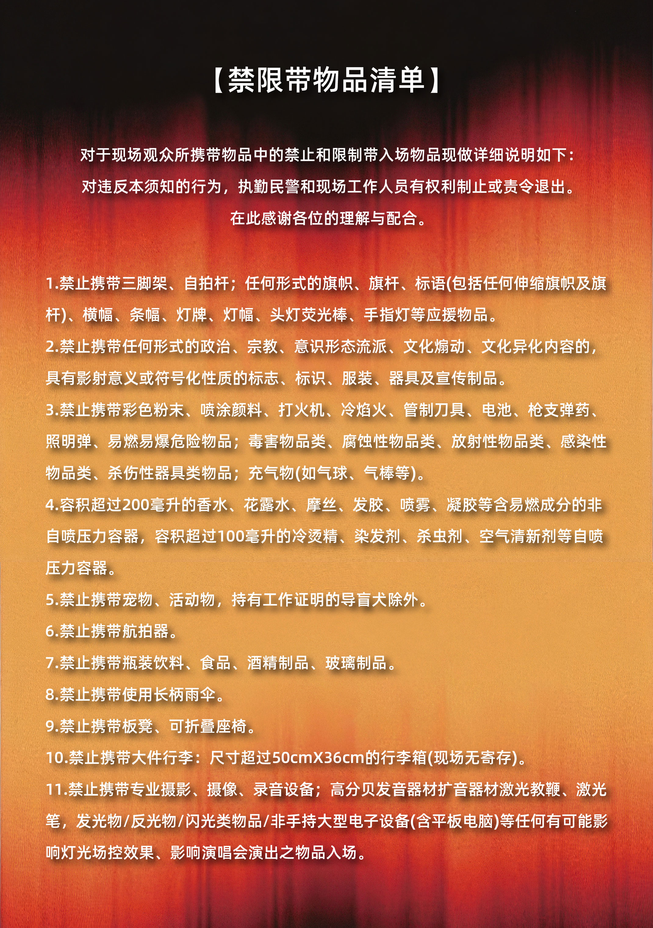 2. The details of the performance are for reference only, and the specific information released by the organizer and the scene shall prevail. Please arrive on time to avoid missing the performance;