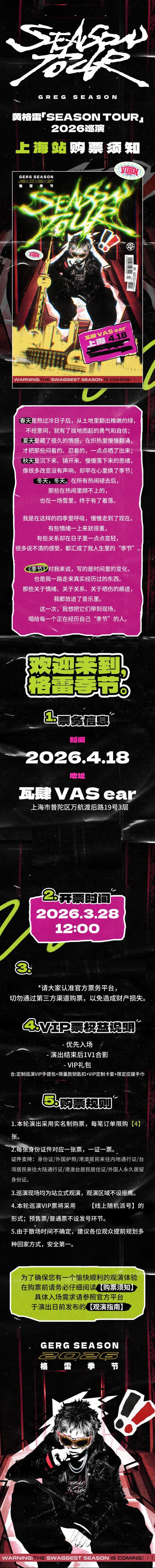 【Shanghai】Gray Huang "Season Tour" 2026 Tour-Shanghai Station