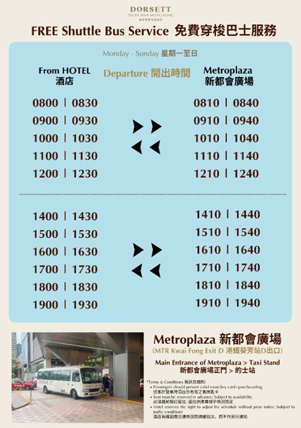 往返 荃湾帝盛酒店 与 新都会广场(港铁葵芳站D出口)