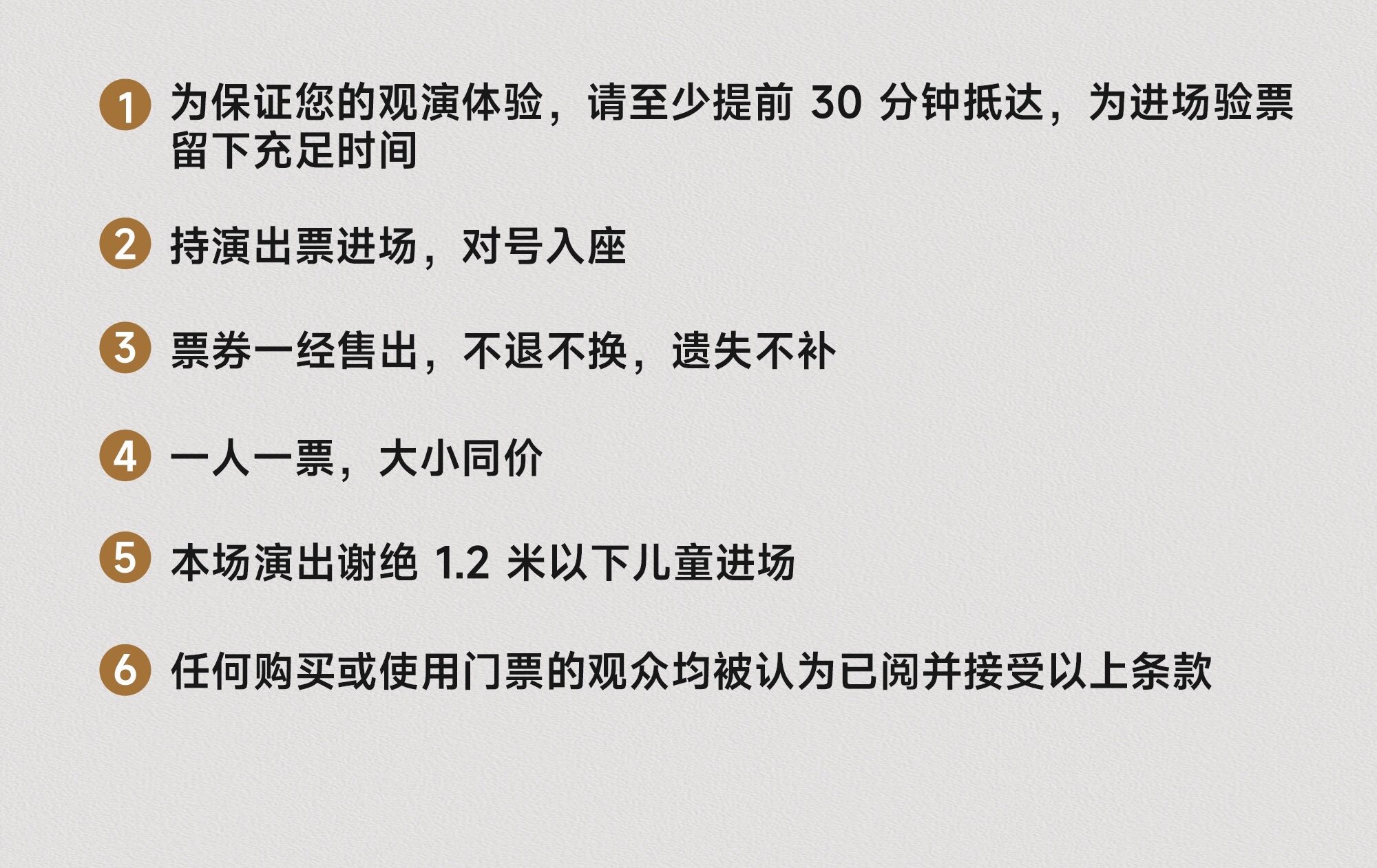 2.演出详情仅供参考,具体以主办方公布信息及现场为准,请准时到场以免错过演出;